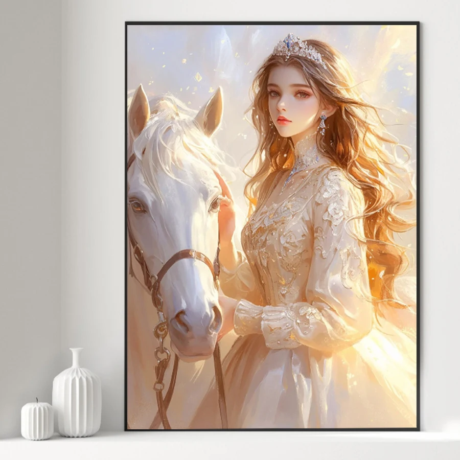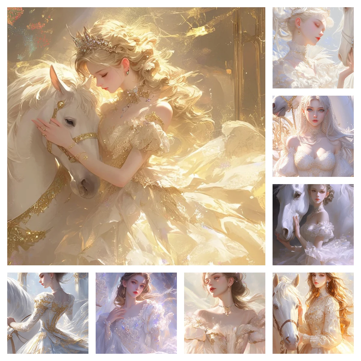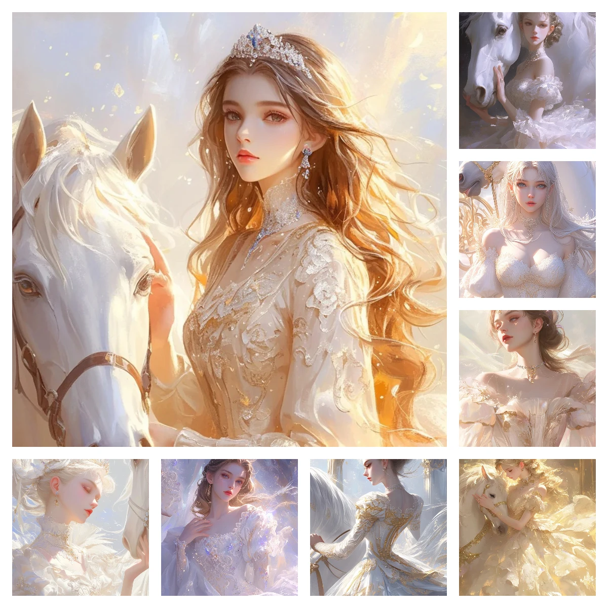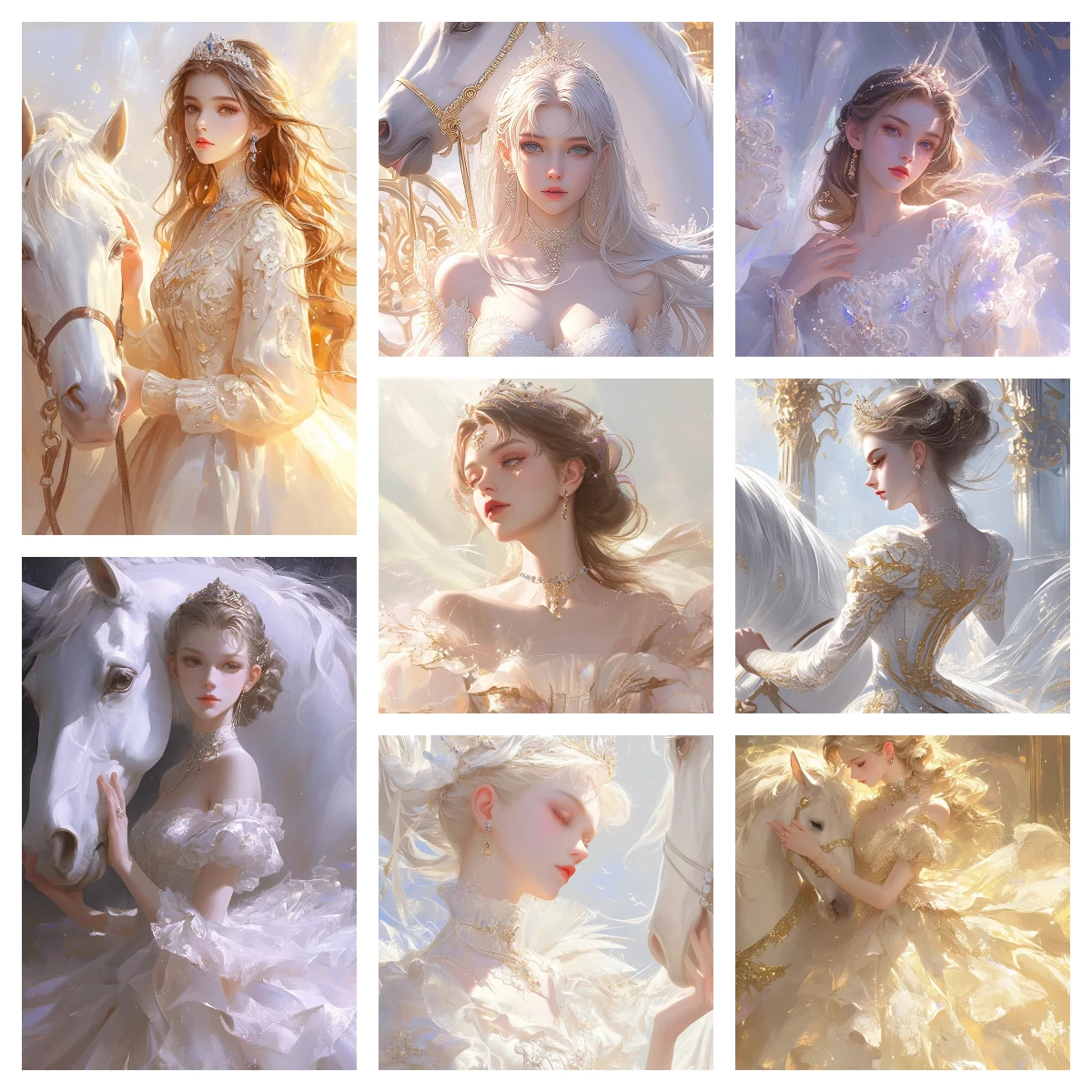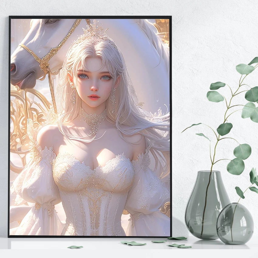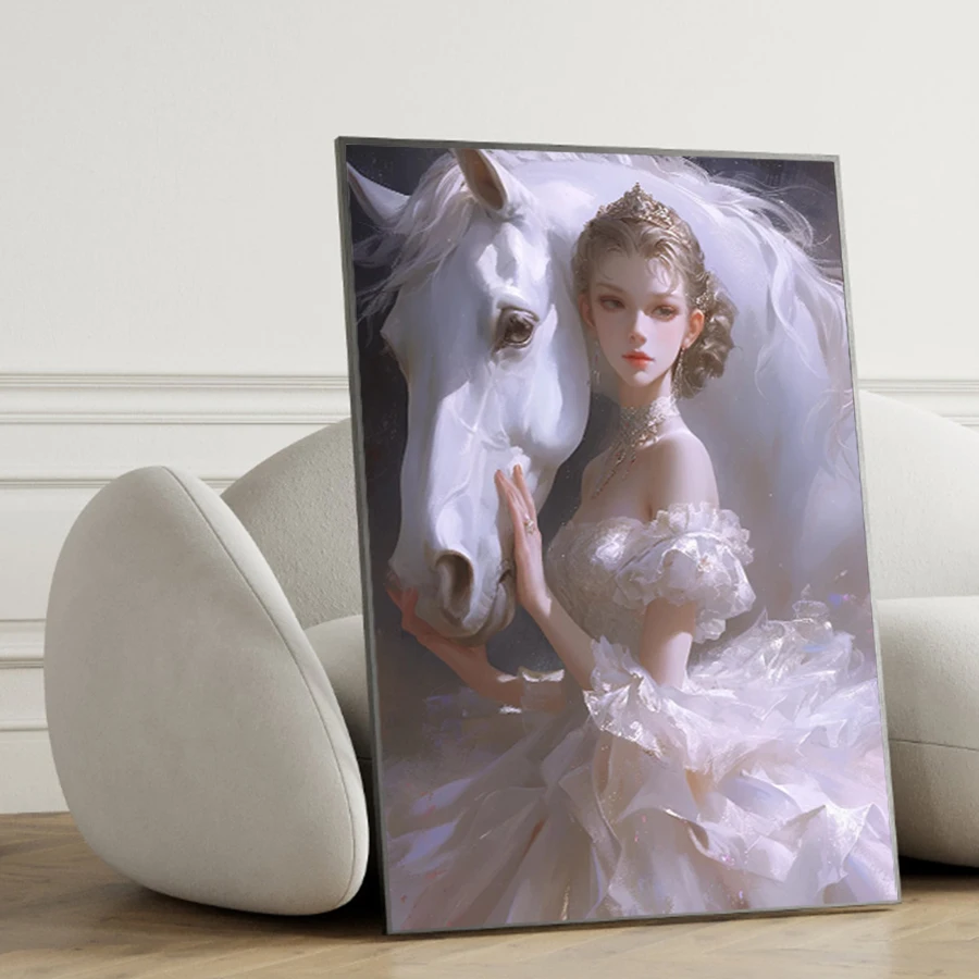 Beautiful Princess White Horse Canvas Wall Art, Canvas Poster, Cartoon Anime Prints Poster For Living Room Home Decor Frameless