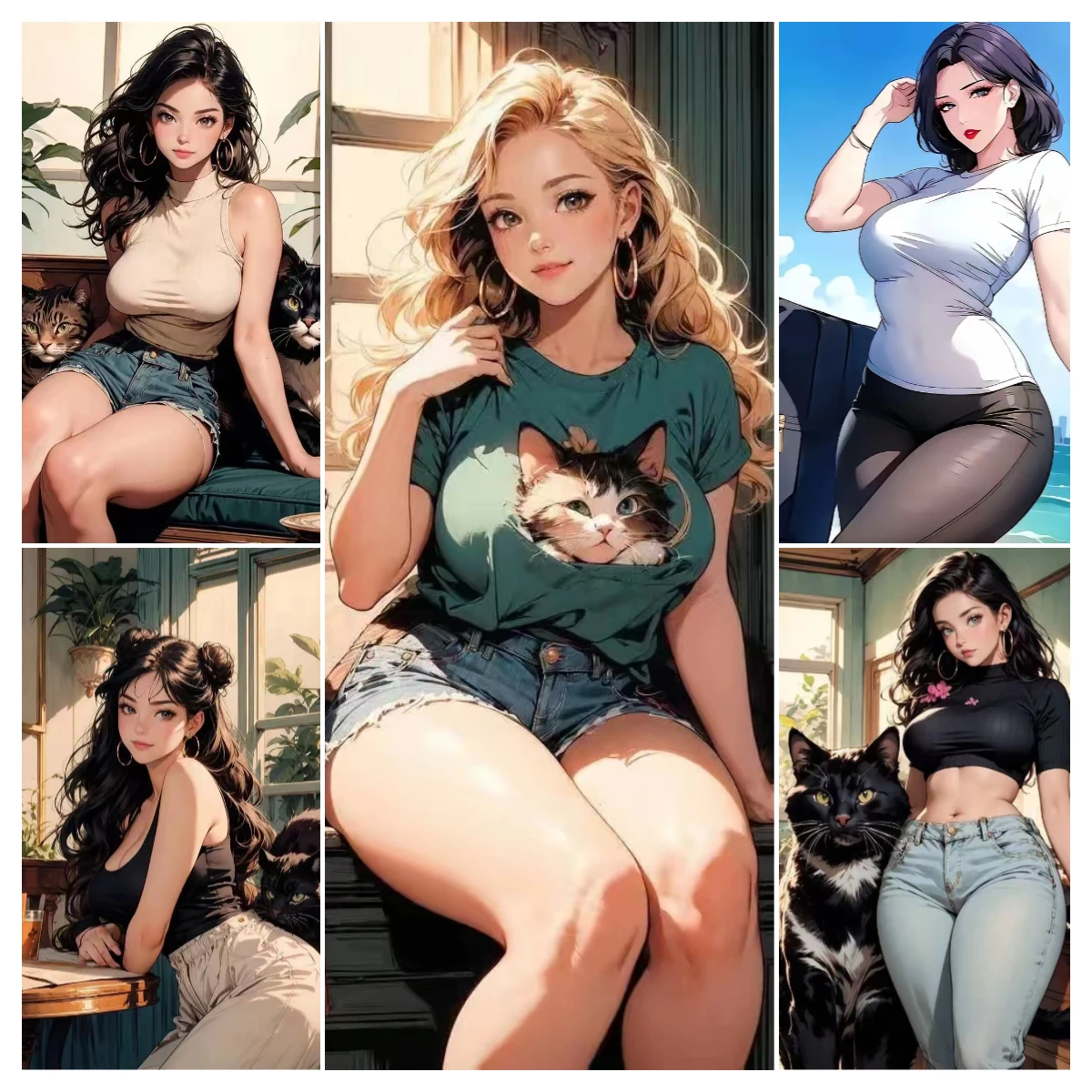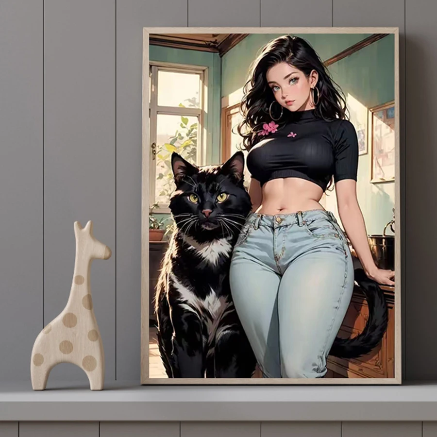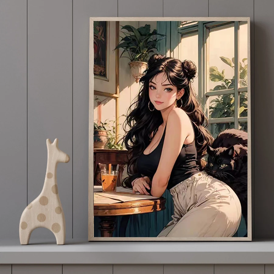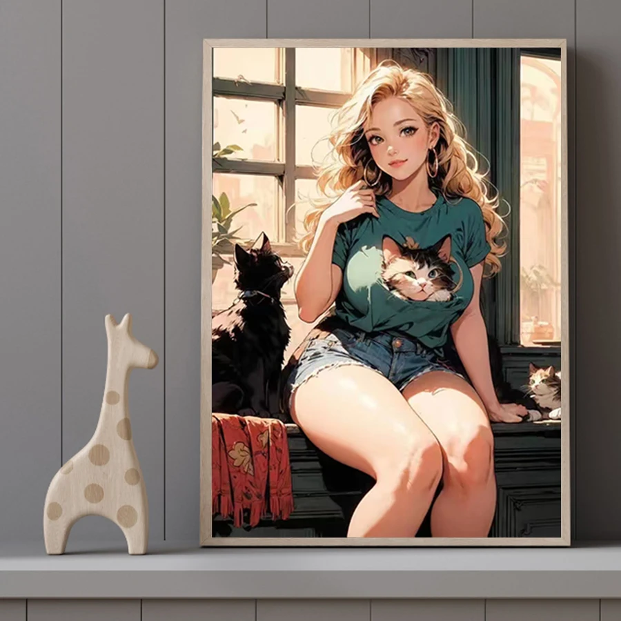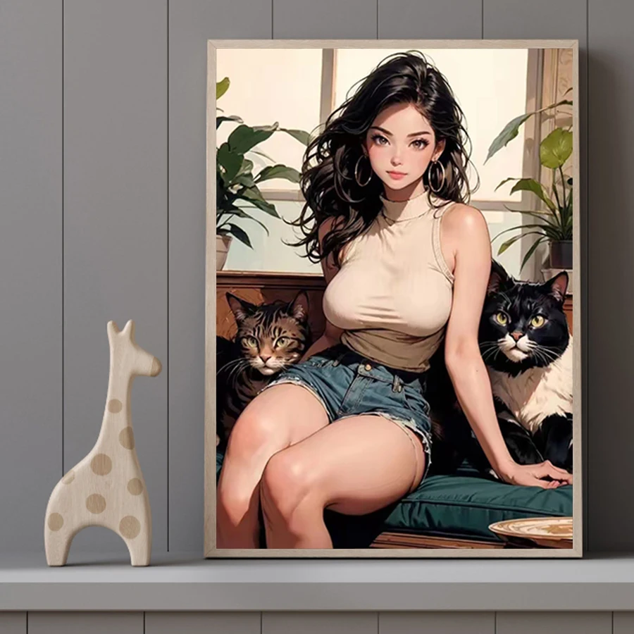 Hot Sexy Beauty Canvas Wall Art, Anime Girl Cat Canvas Poster, Cartoon Anime Prints Poster For Living Room Home Decor Frameless