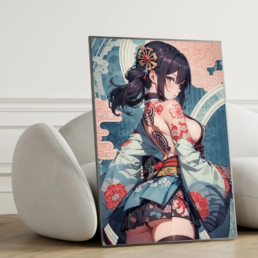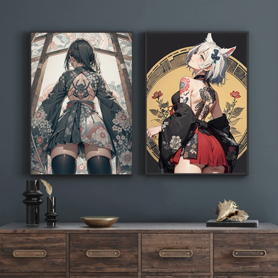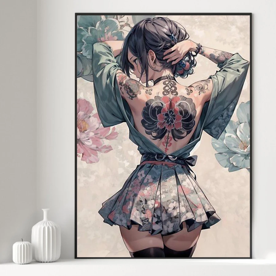 Hot Sexy Beauty Canvas Wall Art, Tattoo Girl Canvas Poster, Cartoon Anime Prints Poster For Living Room Home Decor Frameless