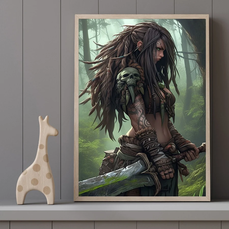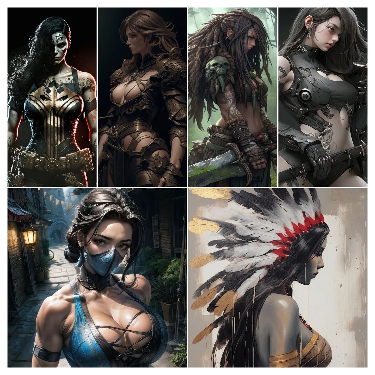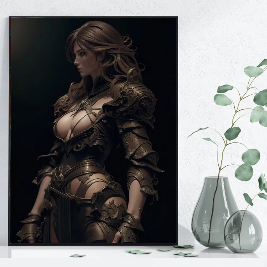 Hot Sexy Beauty Canvas Wall Art, Woman Warrior Canvas Poster, Cartoon Anime Prints Poster For Living Room Home Decor Frameless