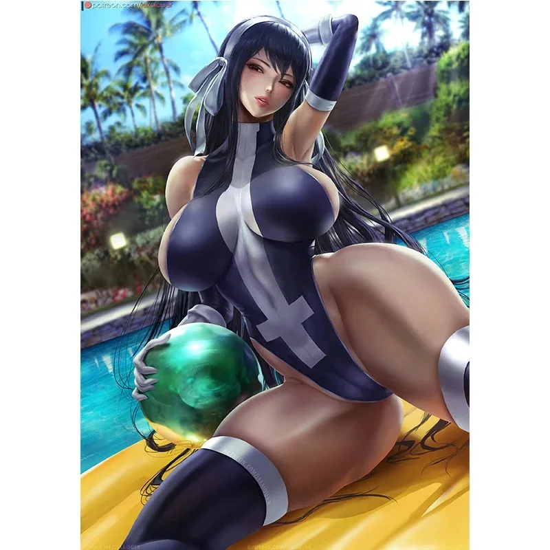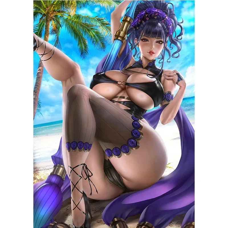 Blue Sexy Anime Girl Art Posters HD Wall Art Canvas Painting for Living Room Home Decor Picture