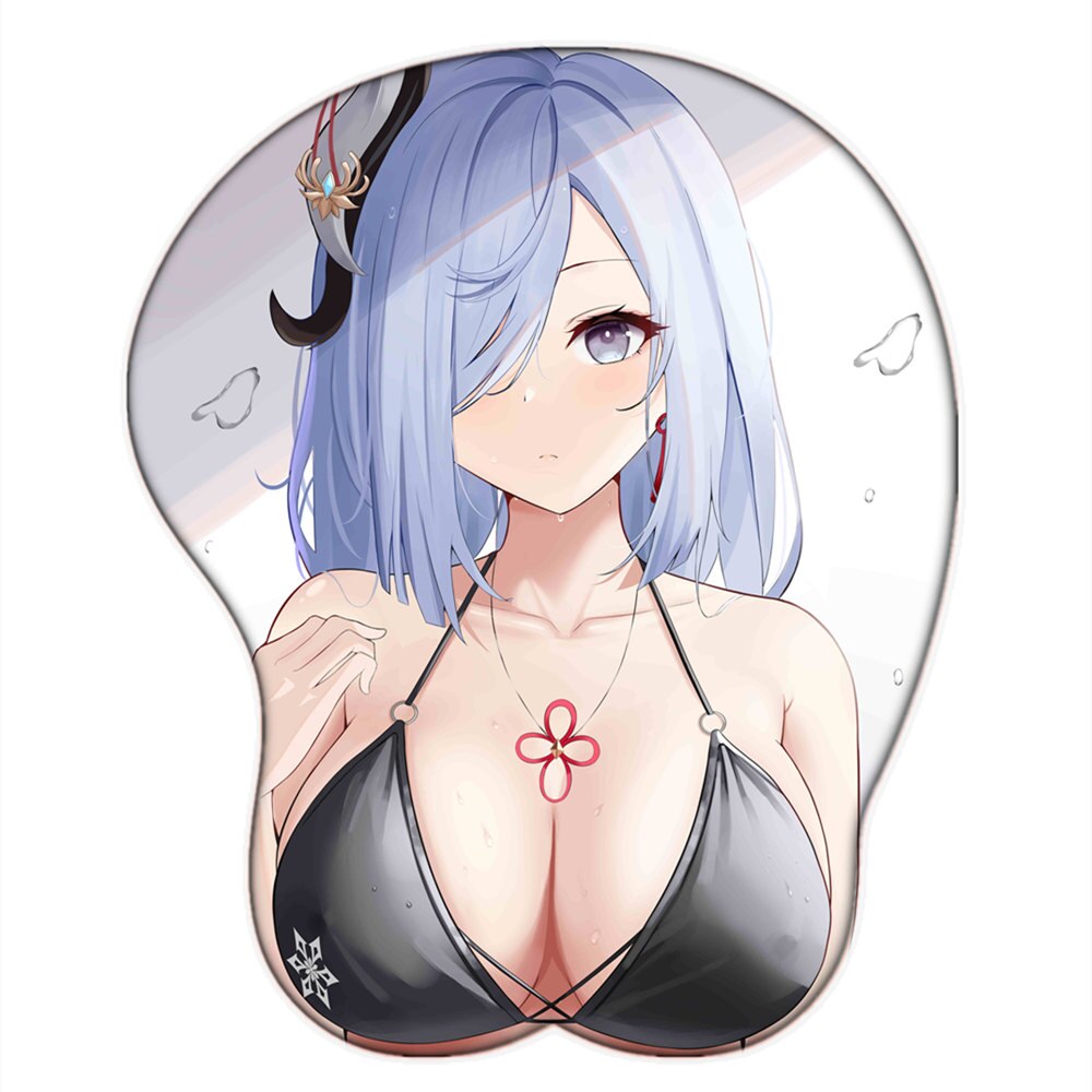 Gaming Genshin Impact Shenhe Eula Swimsuit Anime Girl Big Oppai Breast 3D Mouse Pad Mat with Wrist Rest Soft Silicone