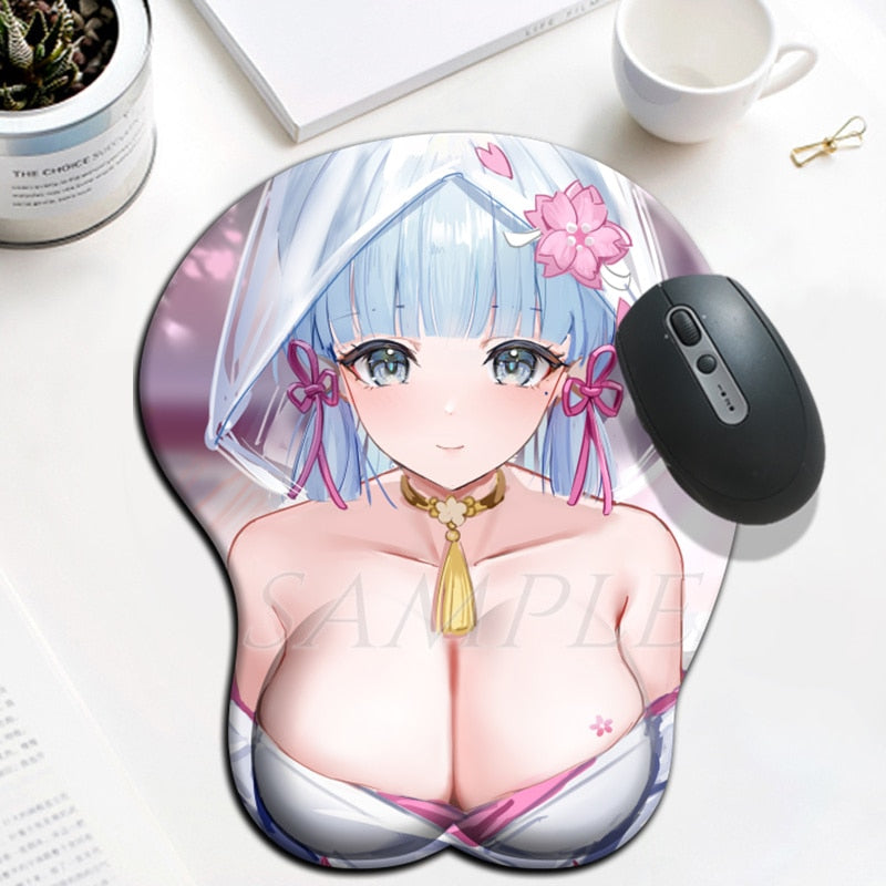 Genshin Impact kamisato ayaka 3D Boobs Mousepad Cute Gaming Anime Mouse Pad with Wrist Rest Oppai Desk Mat