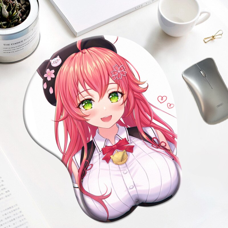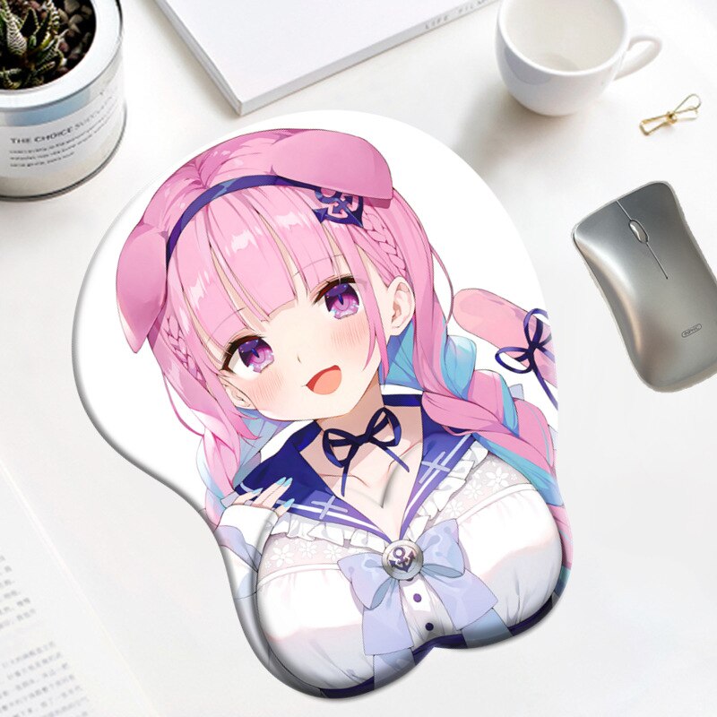Hololive Minato Aqua Boobs Mousepad with Wrist Rest Mouse Pad Cute Anime 3D Oppai Silicone Gel Gaming Big Breast Desk Mat