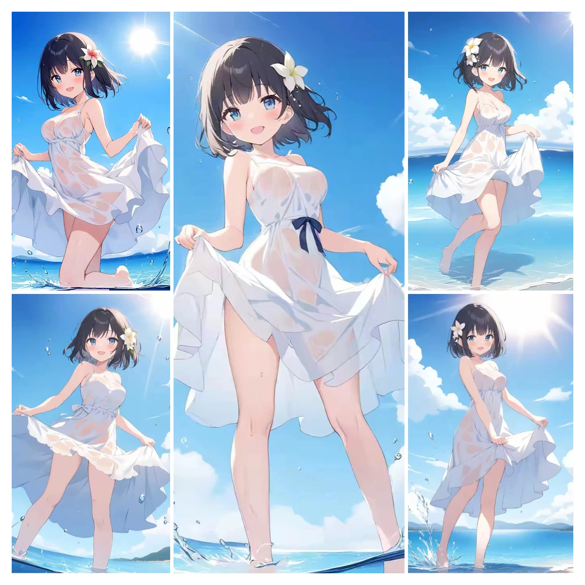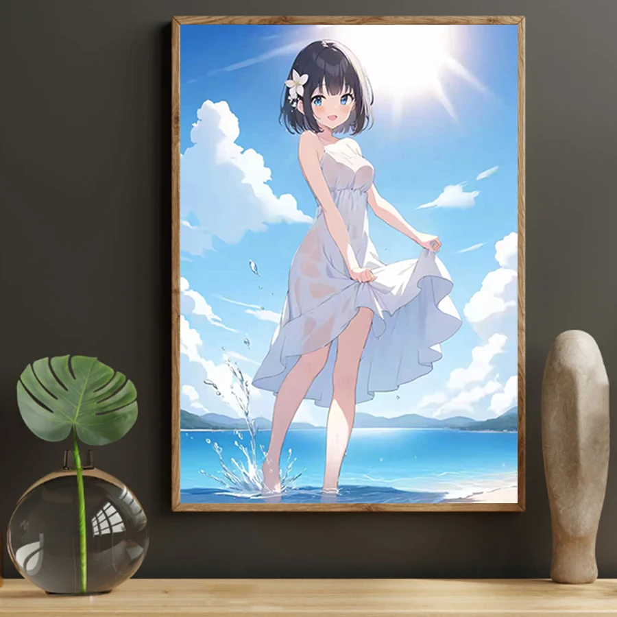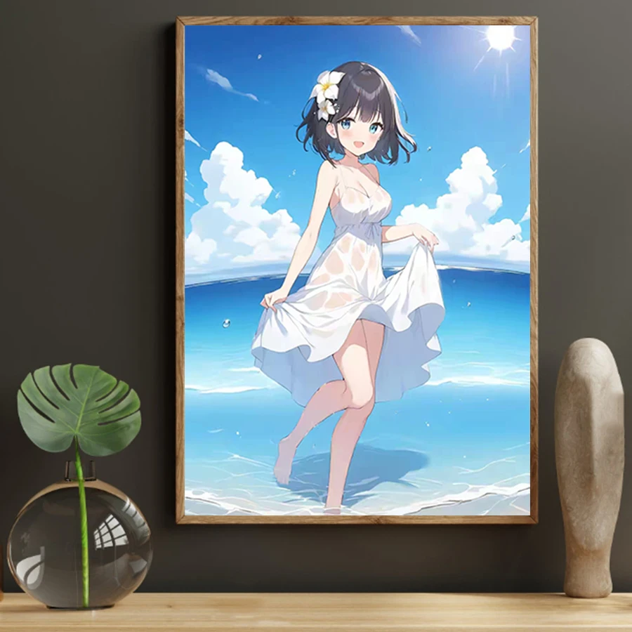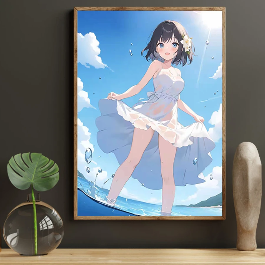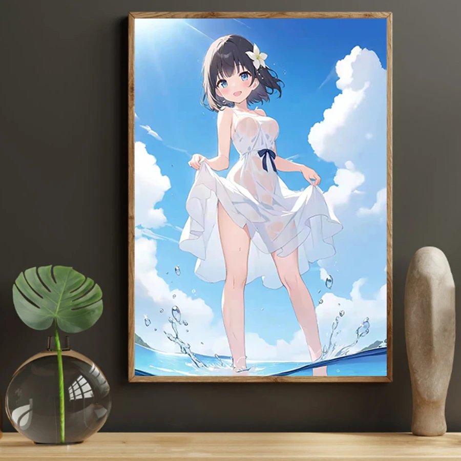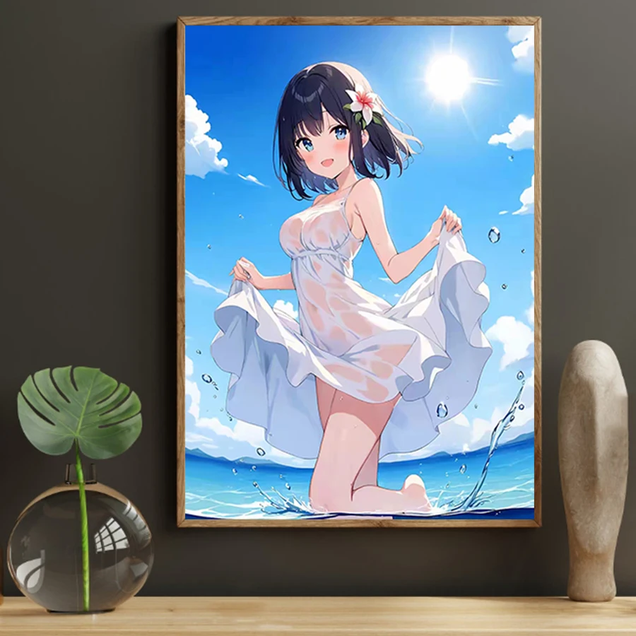 Hot Sexy Anime Girl Canvas Wall Art, Sea Play Canvas Poster, Cartoon Anime Prints Poster For Living Room Home Decor Frameless