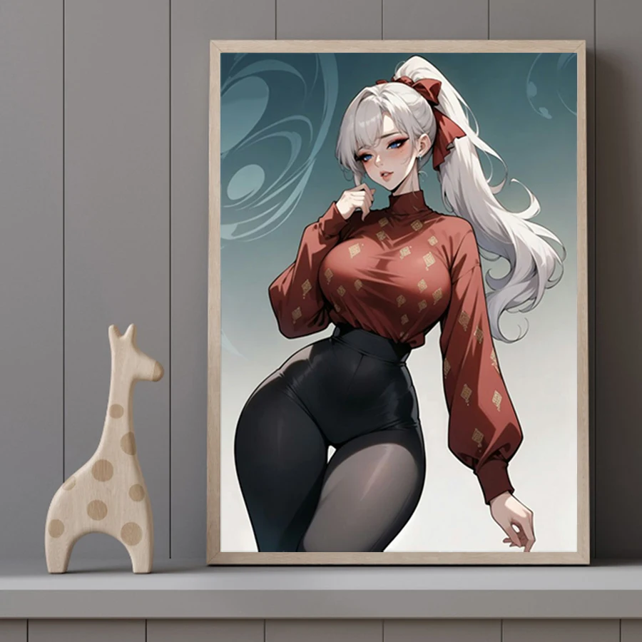 Hot Sexy Beauty Canvas Wall Art, Anime Girl Canvas Poster, Cartoon Anime Prints Poster For Living Room Home Decor Frameless